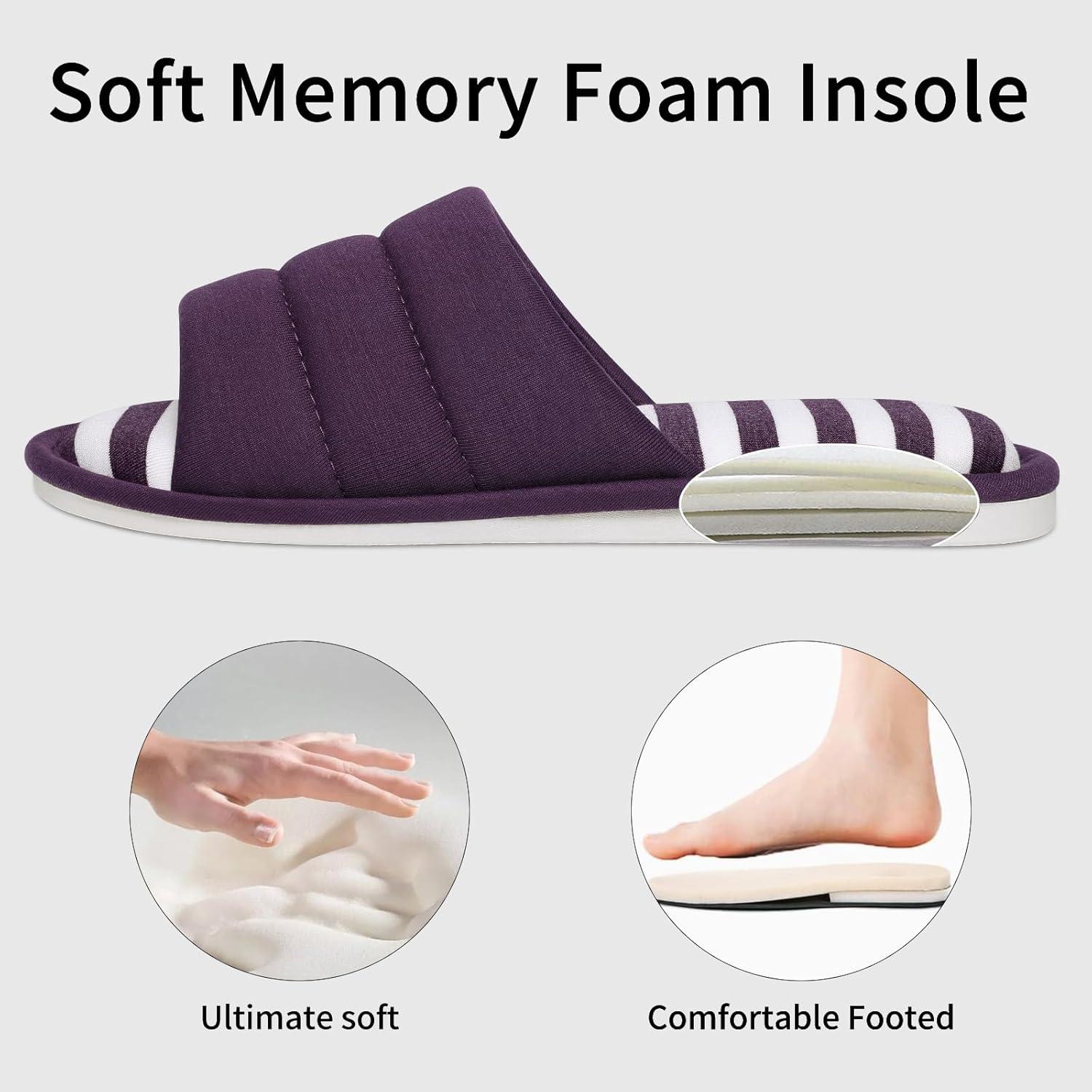 imageshevalues Open Toe House Slippers for Women Men Soft Cotton Indoor Shoes Memory Foam Slip On bedroom SlippersPurple