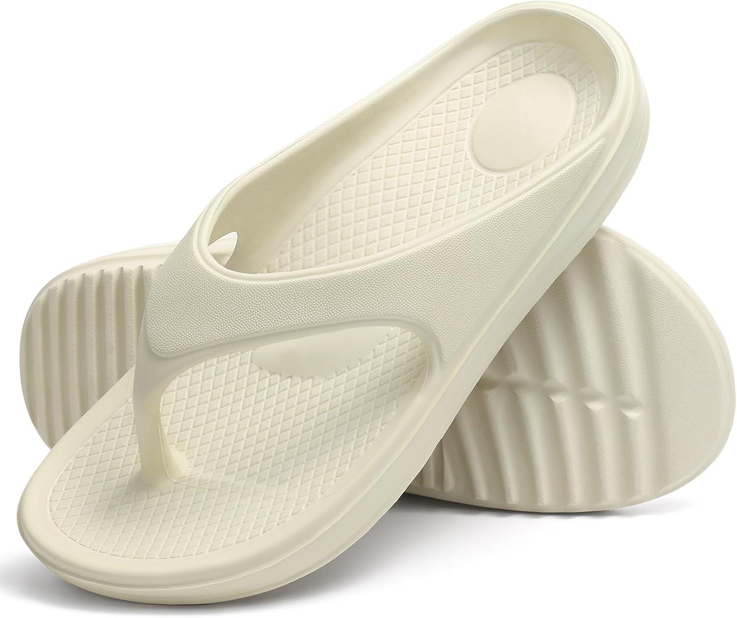 shevalues Orthopedic Sandals for Women Arch Support Recovery Flip Flops Pillow Soft Summer Beach Shoes(Bone)