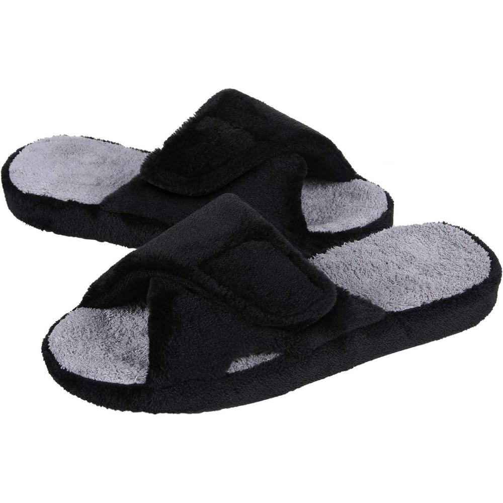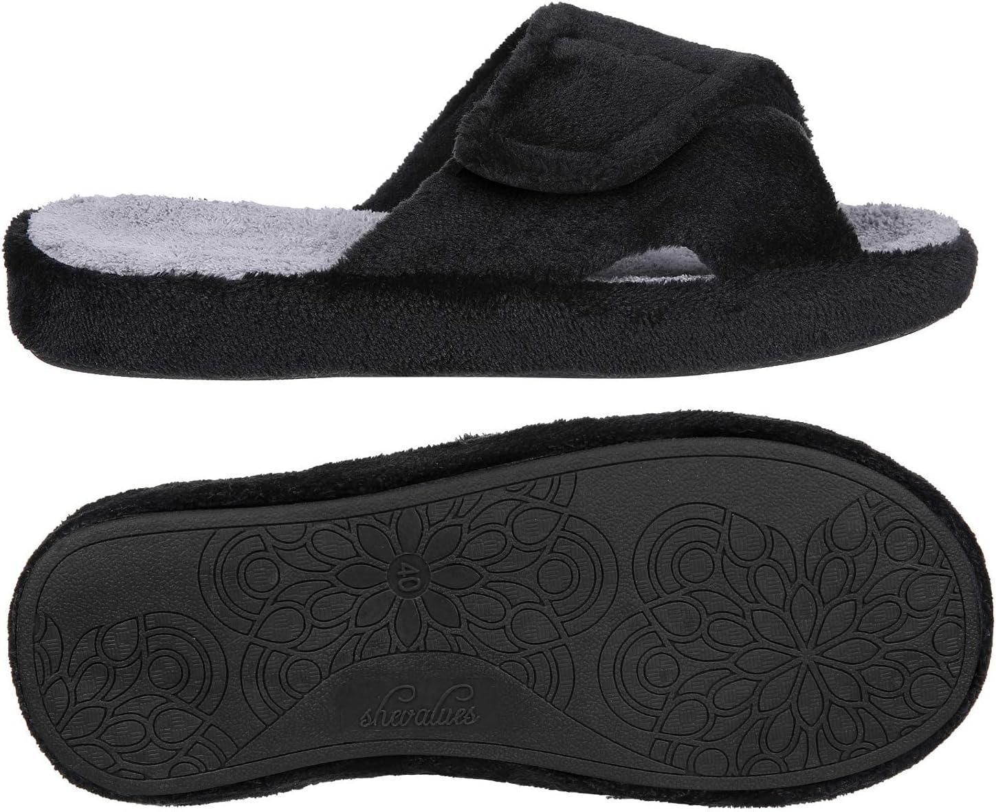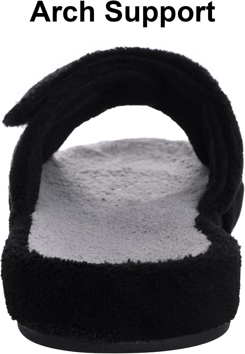 shevalues Orthopedic Slippers for Women with Arch Support Adjustable Open Toe House Shoes for Plantar Fasciitis(Black)