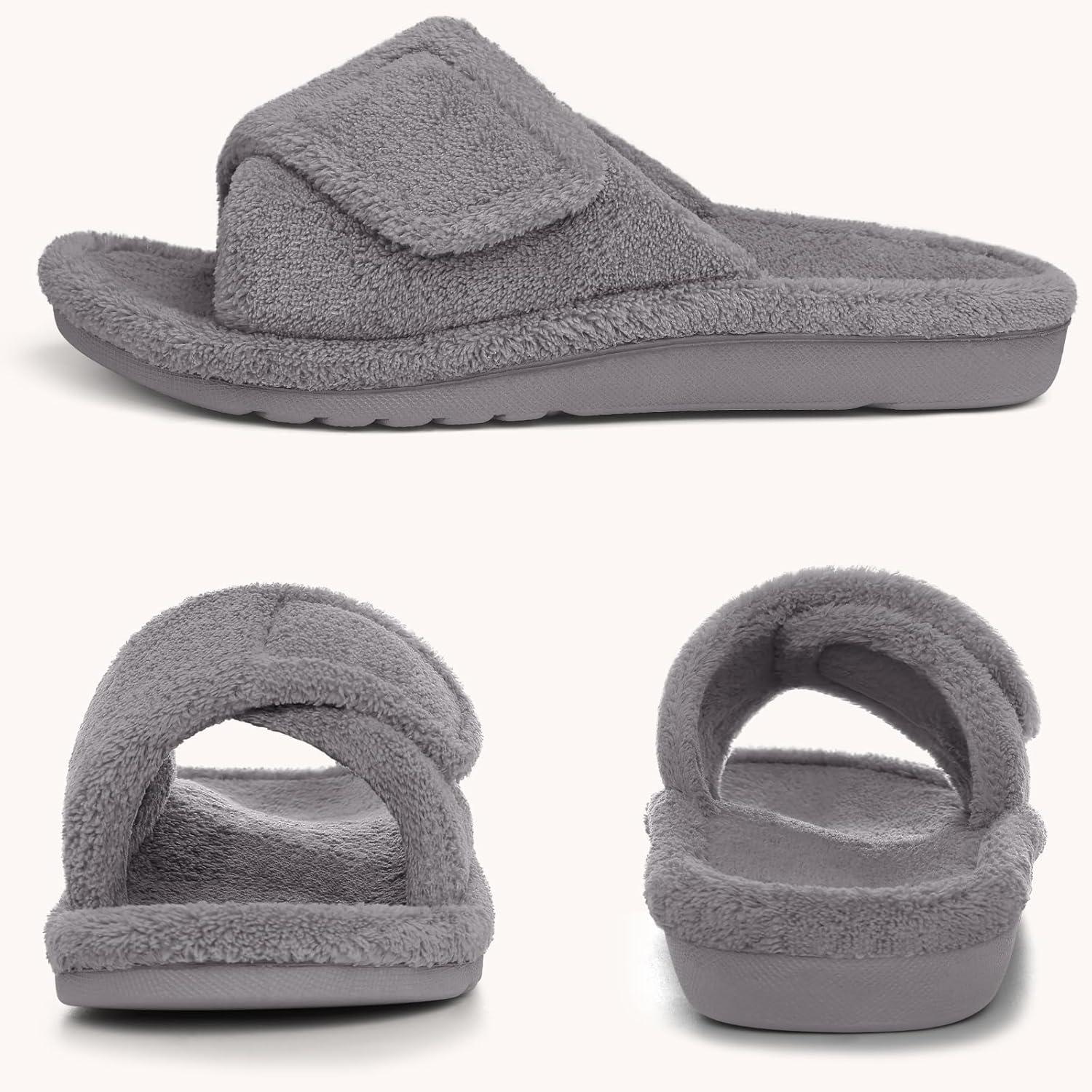 shevalues Orthopedic Slippers for Women with Arch Support Adjustable Open Toe House Shoes for Plantar Fasciitis(New Grey)