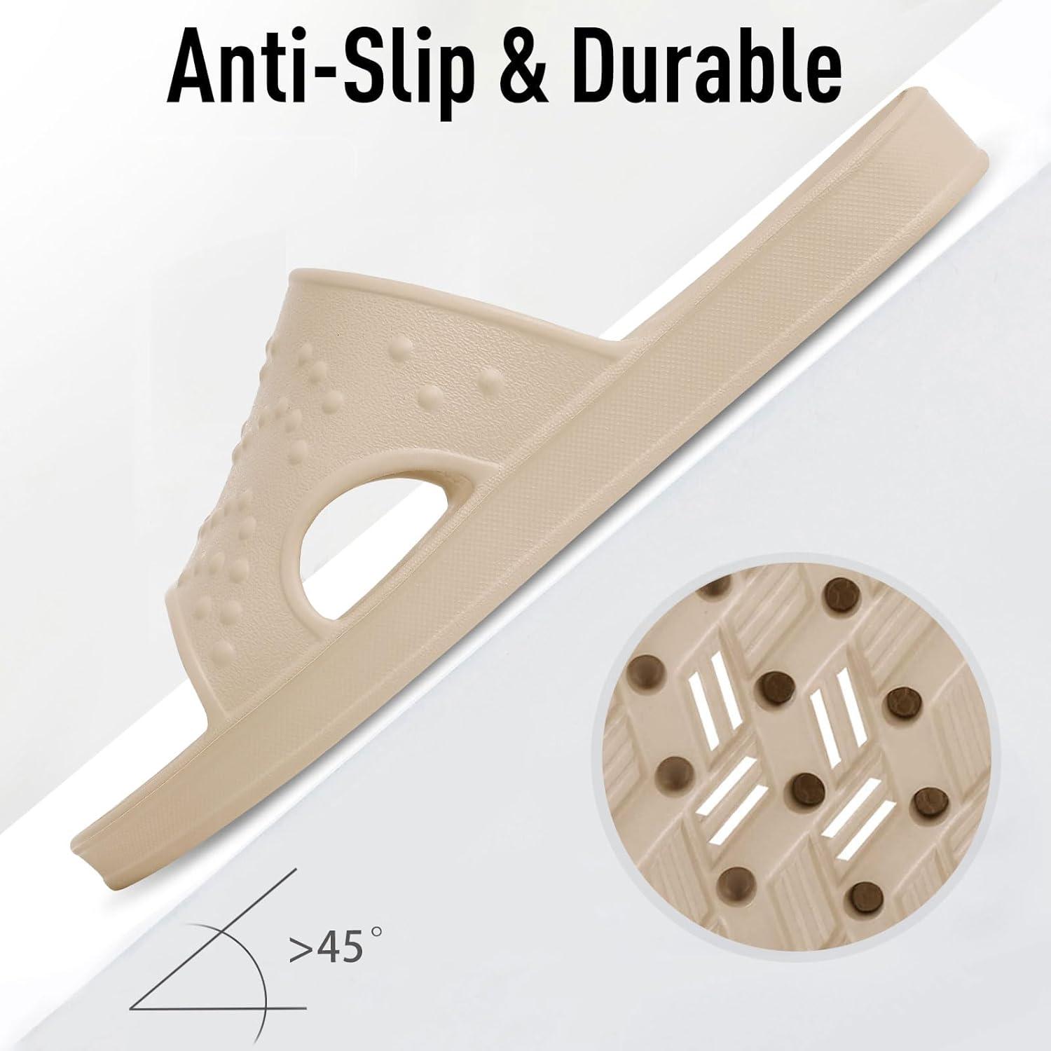 shevalues Shower Shoes for Women Men with Arch Support Quick Drying Pool Slides Lightweight Beach Sandals with Drain Holes(Light Khaki)