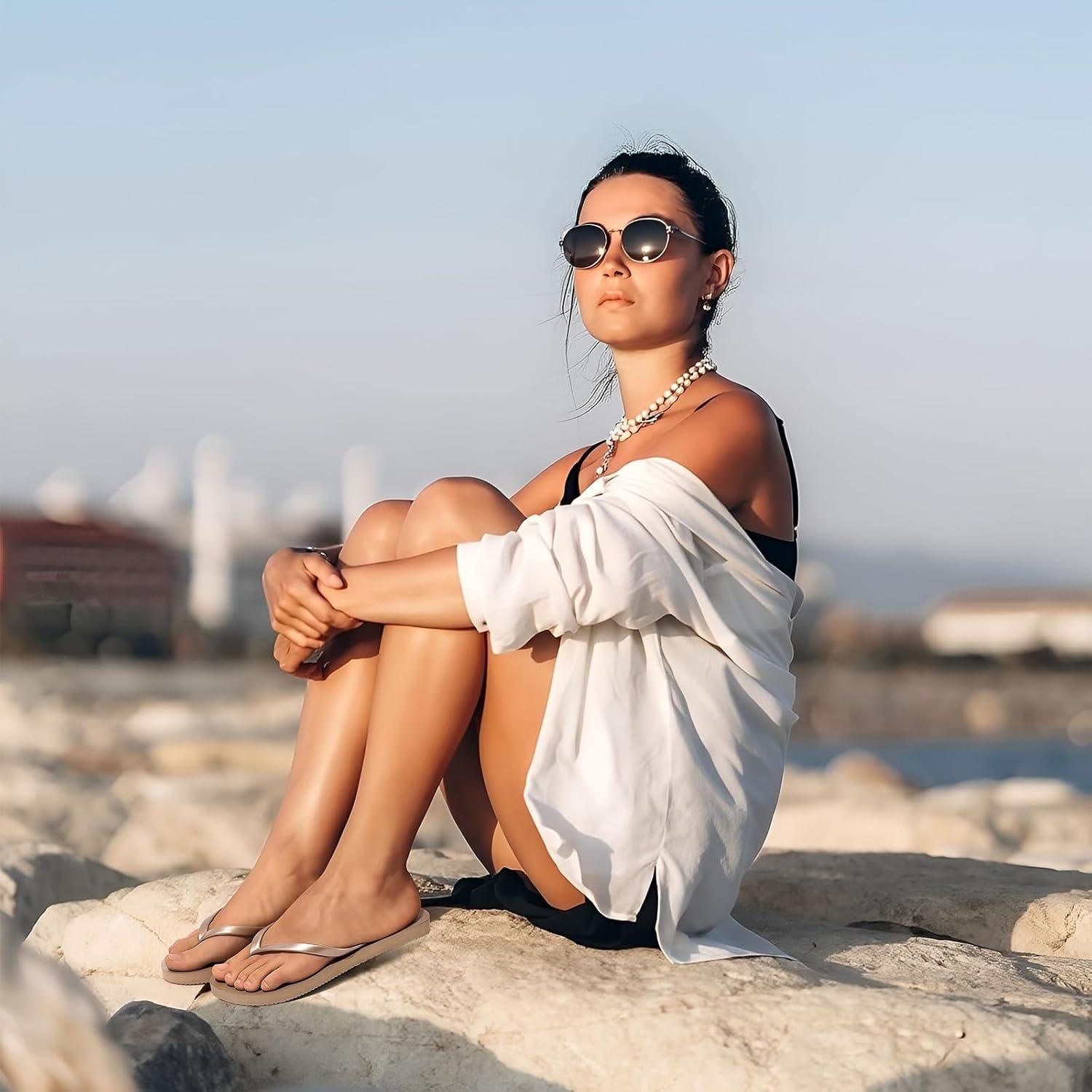 imageshevalues Slim Flip Flops for Women Beach Rubber Shower Shoes Basic Thong SandalsTan