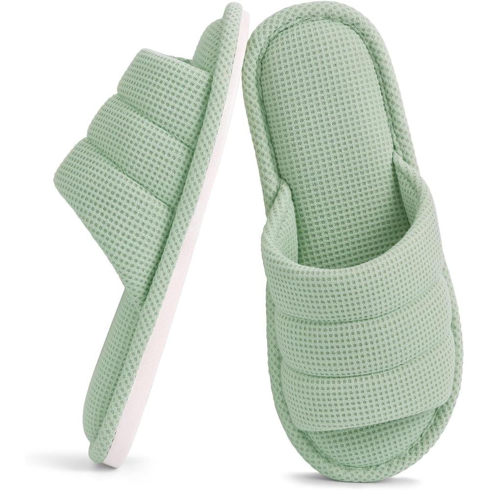 shevalues Summer House Slippers for Women Men Breathable Waffle Indoor Slippers Slip-on Open Toe Home Shoes(Green)
