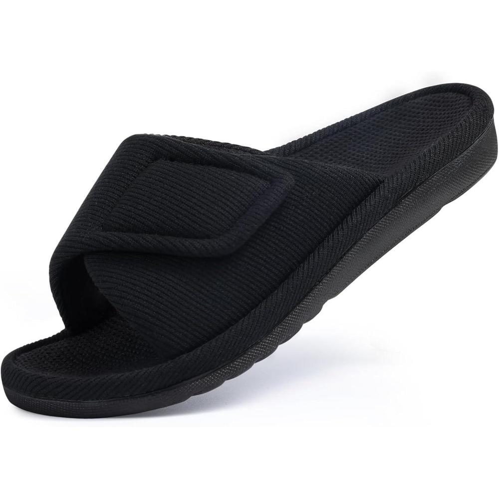 shevalues Terry Cloth Open Toe Slippers for Women Memory Foam Slip On House Slippers(Black)