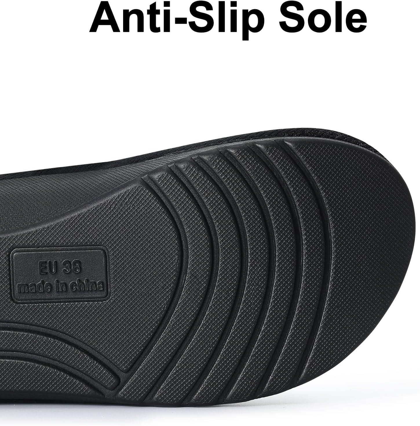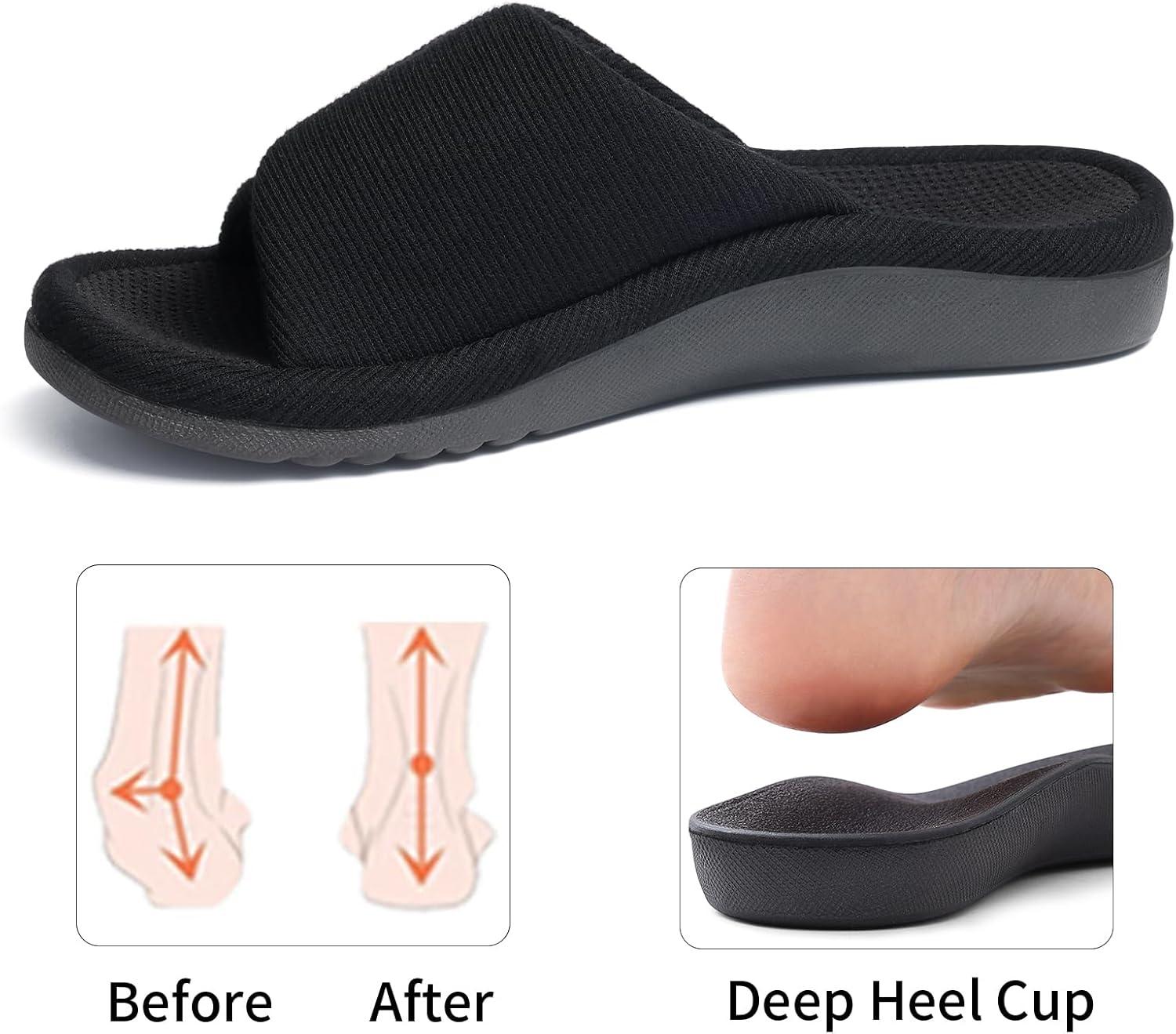 imageshevalues Summer House Slippers for Women with Arch Support Breathable Waffle Cotton Indoor Slippers Slip on Open Toe Home ShoesCarbon Black
