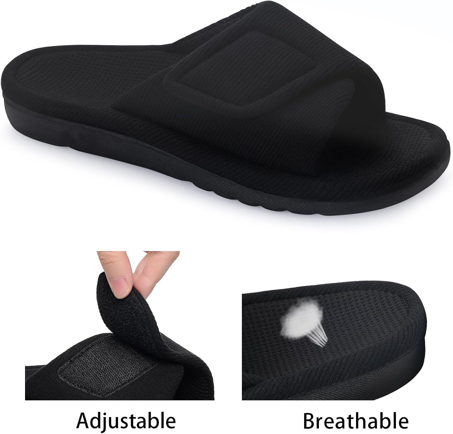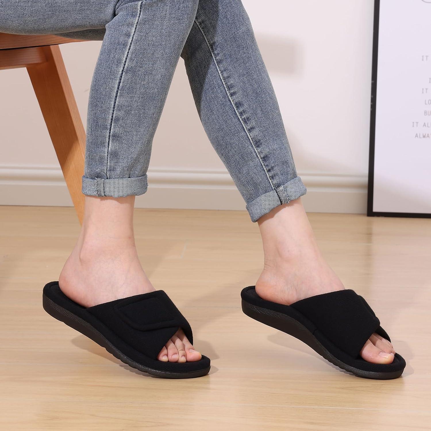 imageshevalues Terry Cloth Open Toe Slippers for Women Memory Foam Slip On House SlippersBlack